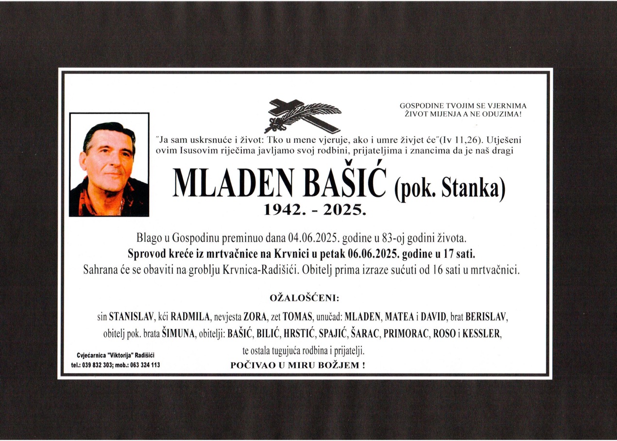 pok. Mladen Bašić (pok.Stanka) 04/06/2025 Radišići Port@l Total Views: 2577Share on FacebookPost on X