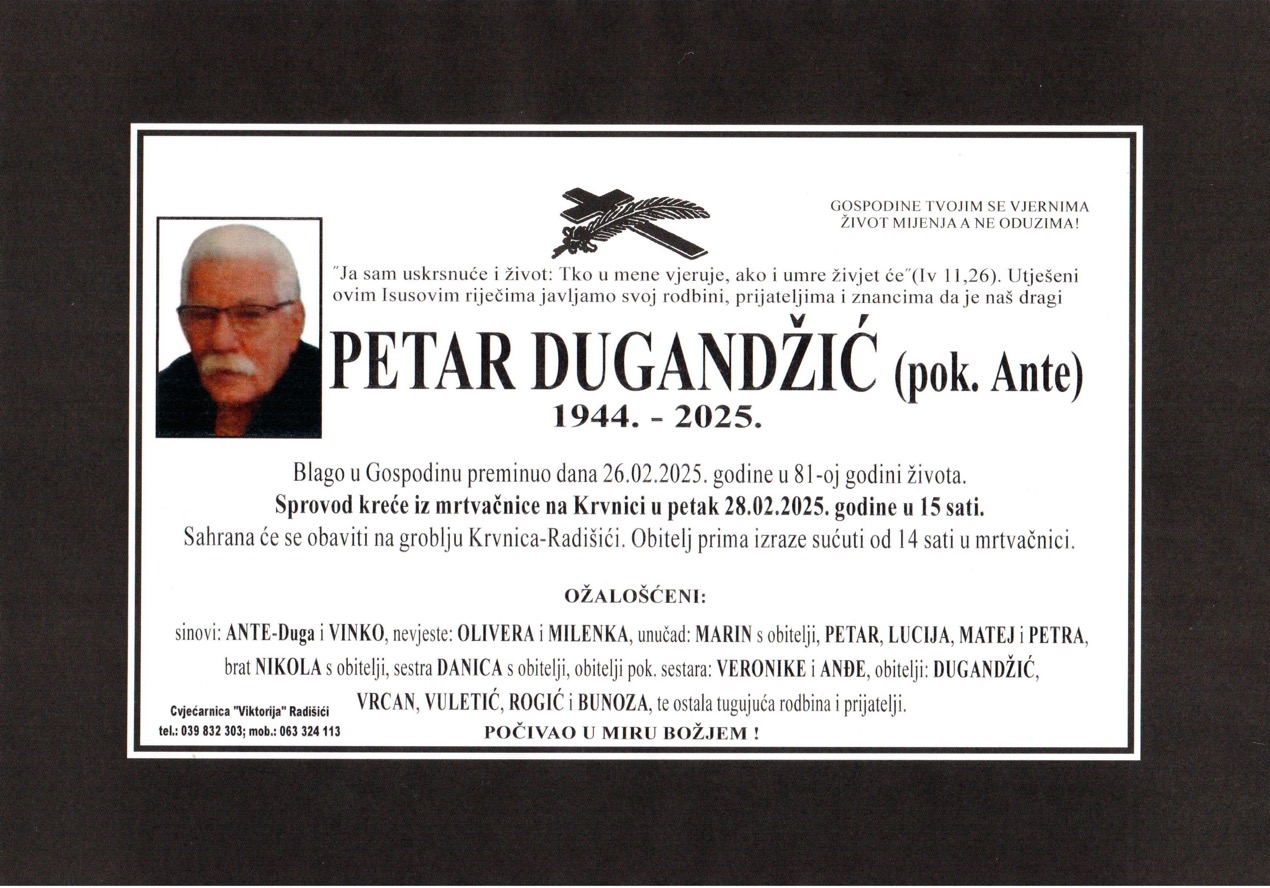 pok. Petar Dugandžić (pok. Ante) 26/02/2025 Radišići Port@l Total Views: 3105Share on FacebookPost on X