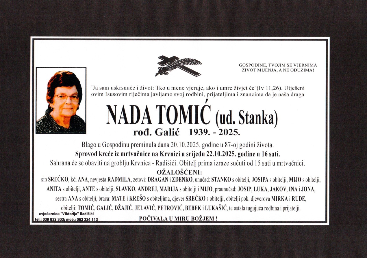 Prigodom smrti Nade Tomić Potsjetnik na Bleiburg i Križni put